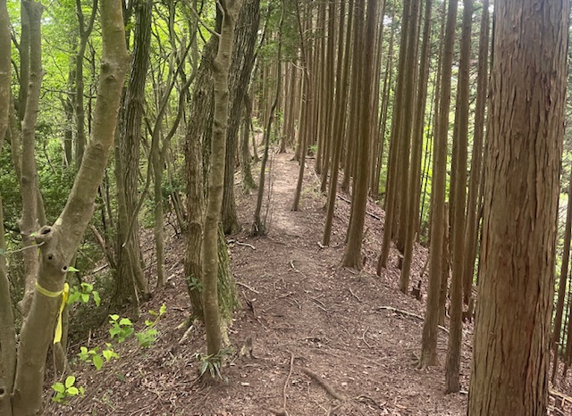 通るスペースが急に狭まって、枝が大量に落ちている。山に入って一番ワクワクした。